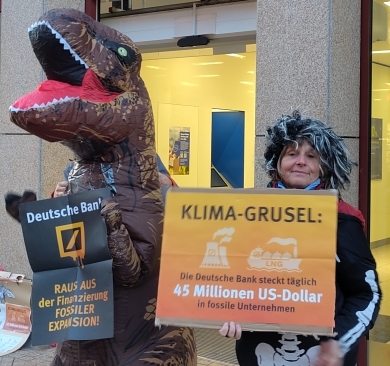 Protestaktionen gegen das fossile Geschäft der Deutschen Bank